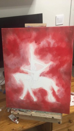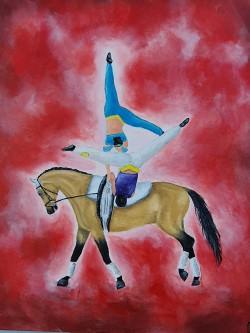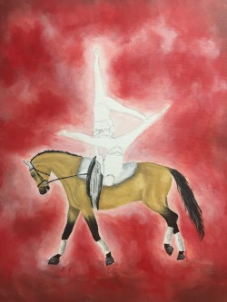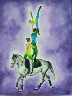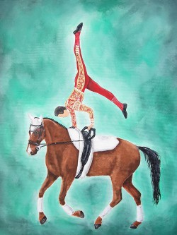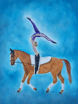 I have been painting for ten years and have also been self-proclaimed for eight years. I took my first two volts pictures for my girlfriends Niki and Liz. It was a great success and as many encouraged me to take more of these pictures I decided to make one picture for the 2021 FEI Senior Vaulting World Championship category winners.